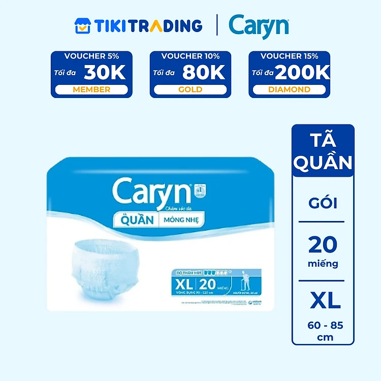Tã/Bỉm Quần Người Lớn Caryn Mỏng Nhẹ Chống Tràn Dành Cho Người Già Có Thể Tự Đi Lại Size XL20 miếng)