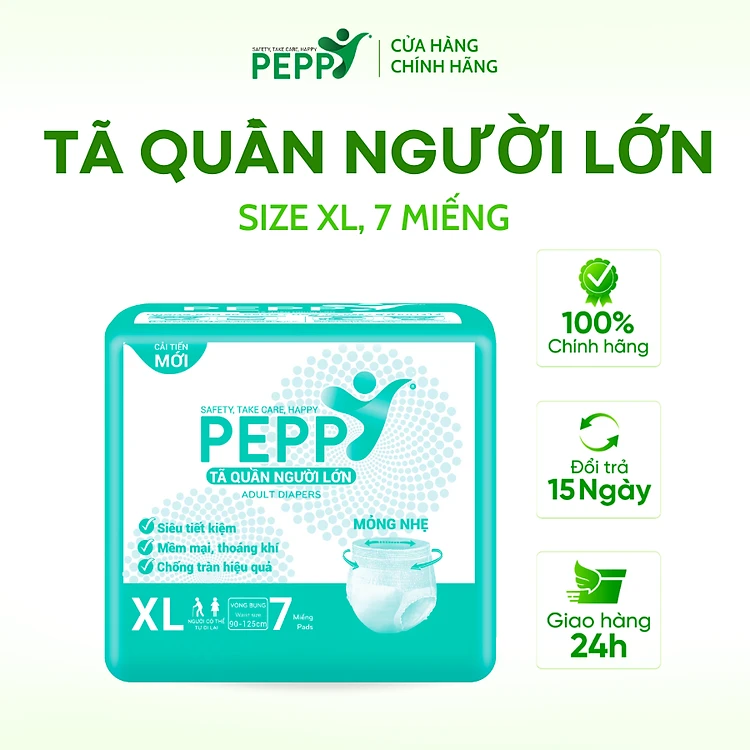 Tã/Bỉm Quần Người Lớn, Người Già Peppy Siêu Mỏng, Siêu Thấm, Mềm Mại, Kháng Khuẩn Size M8/L7/XL7