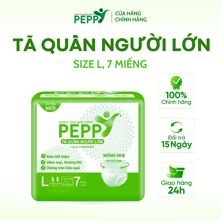 Tã/Bỉm Quần Người Lớn, Người Già Peppy Siêu Mỏng, Siêu Thấm, Mềm Mại, Kháng Khuẩn Size M8/L7/XL7