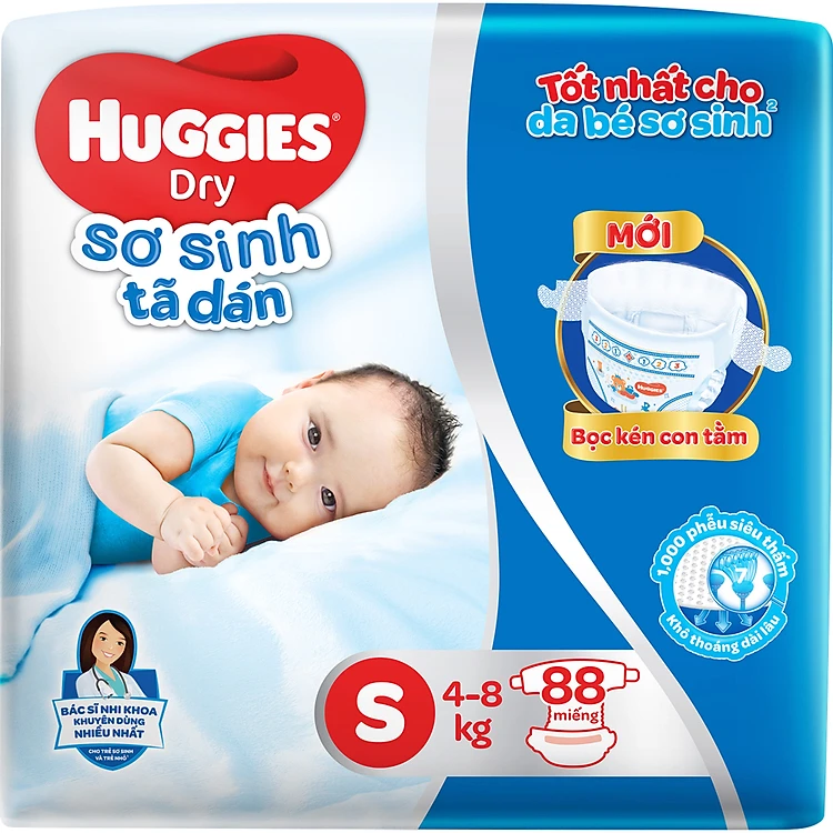 - Tã dán sơ sinh Huggies S88 với thiết kế Bọc kén con tằm mới