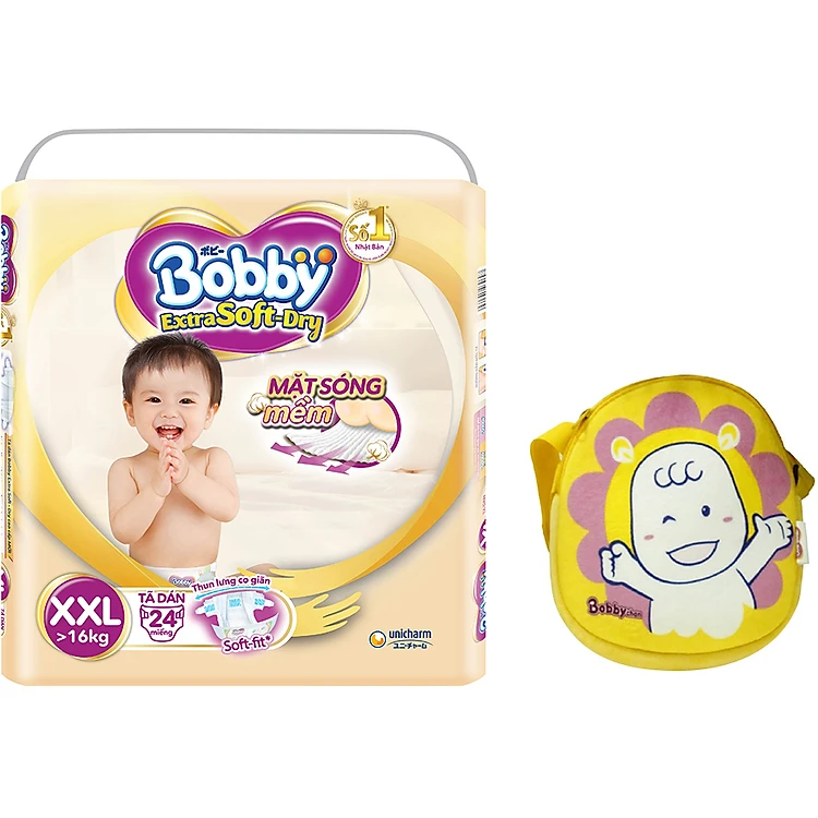 Tã Dán Bobby Extra Soft Gói Đại XXL24 (24 Miếng) - Tặng túi đeo chéo