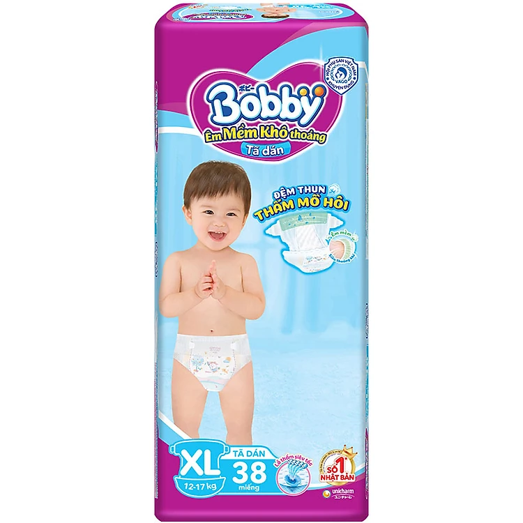 Tã Dán Bobby Fresh Siêu Mỏng Gói Đại XL38 (38 Miếng) là lựa chọn hoàn hảo để chăm sóc vệ sinh cho bé vào ban ngày, tăng cường khả năng thấm hút chất thải cho bé cảm giác khô thoáng suốt cả ngày. Được làm hoàn toàn bằng chất liệu vải bông đã qua kiểm định chất lượng nghiêm ngặt, tã sẽ là trợ thủ đắc lực của mẹ trong việc chăm sóc bé yêu một cách toàn diện trong giai đoạn đầu đời.