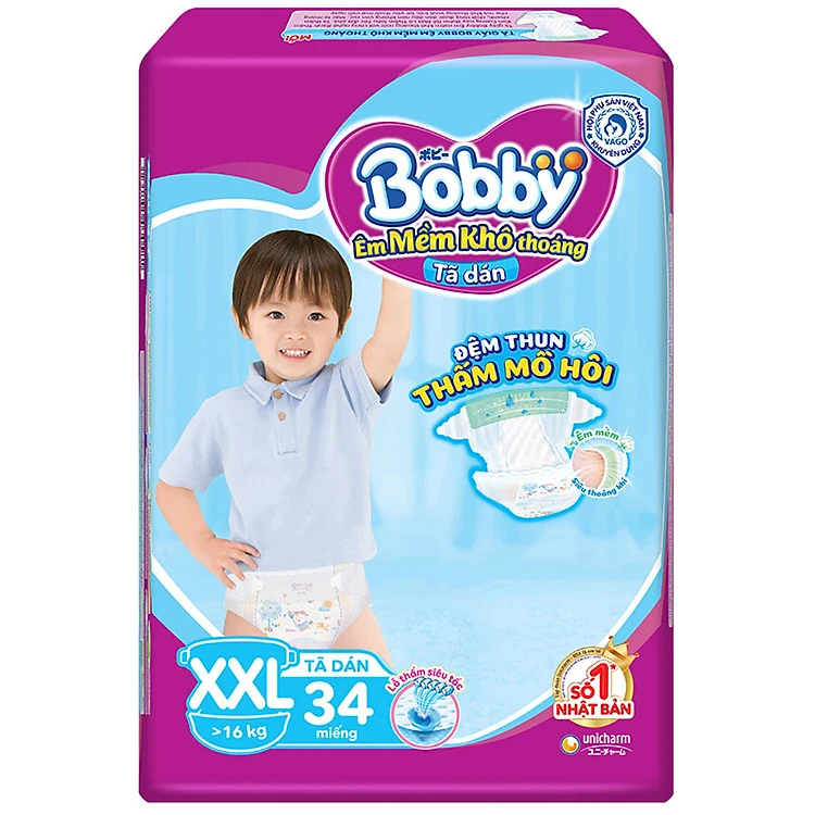 Tã Dán Bobby Fresh Siêu Mỏng Gói Đại XXL34 (34 Miếng)