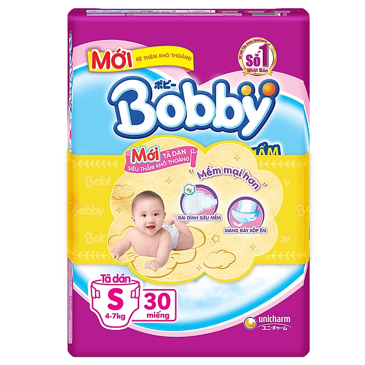 Làn da của bé vô cùng non nớt và nhạy cảm. Chính vì thế những sản phẩm vệ sinh cho bé trong những năm tháng đầu đời phải mang những đặc điểm thật riêng biệt và tối ưu phù hợp làn da bé cũng như bảo vệ tốt sức khỏe của bé. Đến từ thương hiệu Unicharm, sản phẩm tã dán Bobby Fresh Siêu Mỏng S30 (30 Miếng) siêu mỏng 3 miếng sẽ giúp bố mẹ yên tâm về những điều trên. Hệ thun co giãn linh hoạt, bề mặt 3D khô thoáng cùng mặt đáy siêu thấm, siêu thoát ẩm,.. của tã sẽ mang đến cho bé những giờ phút vui chơi cũng như những vận động thật thoải mái và dễ chịu. Bé tự do khám phá thế giới mà không lo bị làm phiền bởi tràn tã hay ngứa rát vì chứng hăm da.