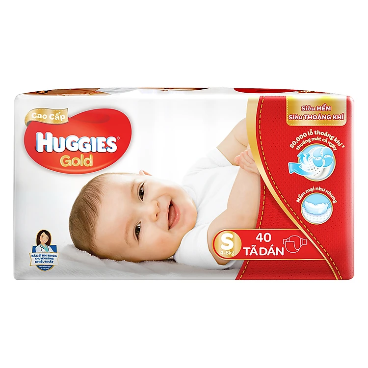 Tã Dán Cao Cấp Huggies Gold Gói Đại S40 (40 Miếng)