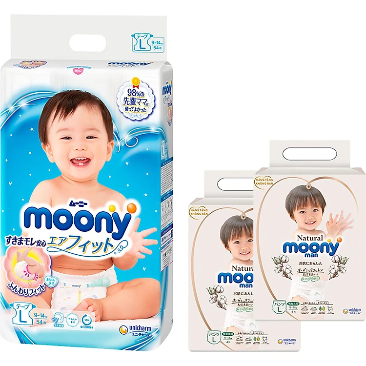 Tã Dán Cao Cấp Moony Nhật Bản L54 [Tặng 8 miếng tã quần Moony Natural cùng size]