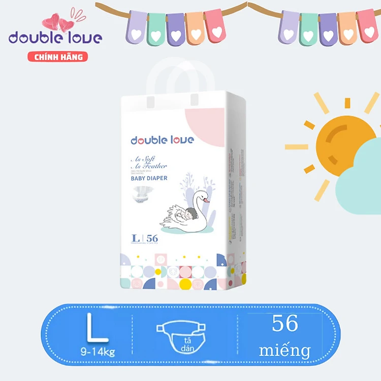 Tã dán Double Love Size S68 - M60 - L56 - XL52 bỉm siêu mỏng, thấm hút nhanh, chống tràn, chống hăm