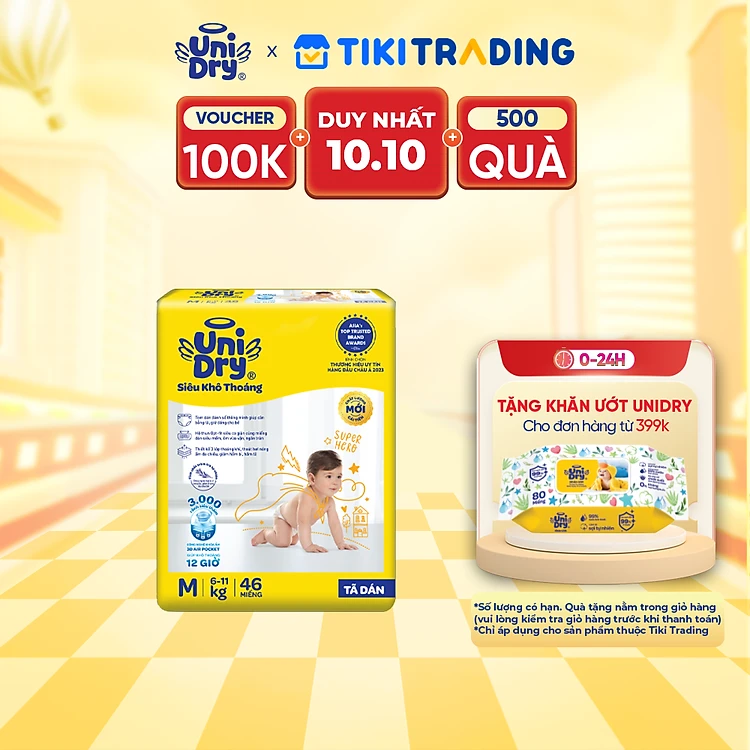 Tã dán em bé Siêu khô thoáng gói Jumbo Unidry G6X size M-46 miếng