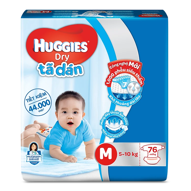 Tã dán Huggies bao bì mới, szM có 76 miếng, cho bé từ 6 - 10kg