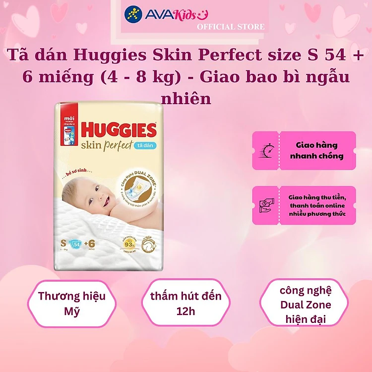 Với khả năng duy trì độ pH trên da tã dán Huggies Skin Perfect size S 54 + 6 miếng (4 - 8 kg) giúp mang đến cho bé làn da khỏe mạnh, xua tan nỗi lo con yêu bị kích ứng da của các bậc phụ huynh.