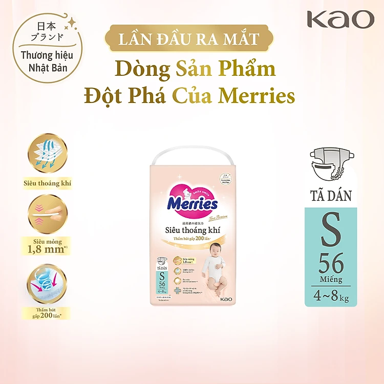 Tã Dán Merries Siêu Thoáng Khí Đủ Size NB62/S56/M48