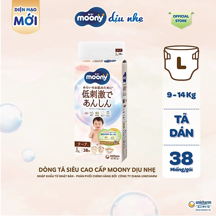 Tã Dán Moony Dịu Nhẹ NB62+4/S58+2/M46/L38