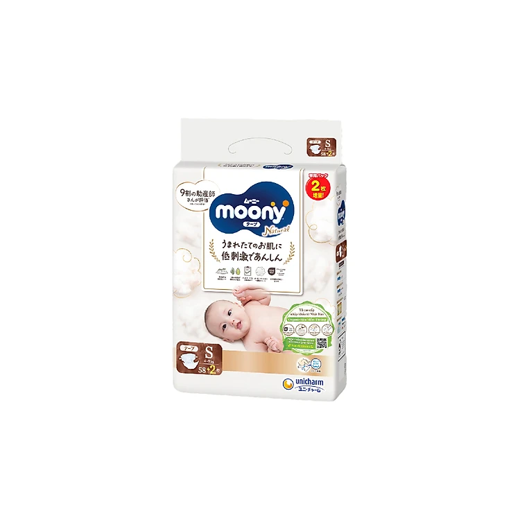 + Thành phần làm tã có nguồn gốc từ thiên nhiên, độ pH tương đương khoảng 5.5 – phù hợp vói làn da trẻ sơ sinh
