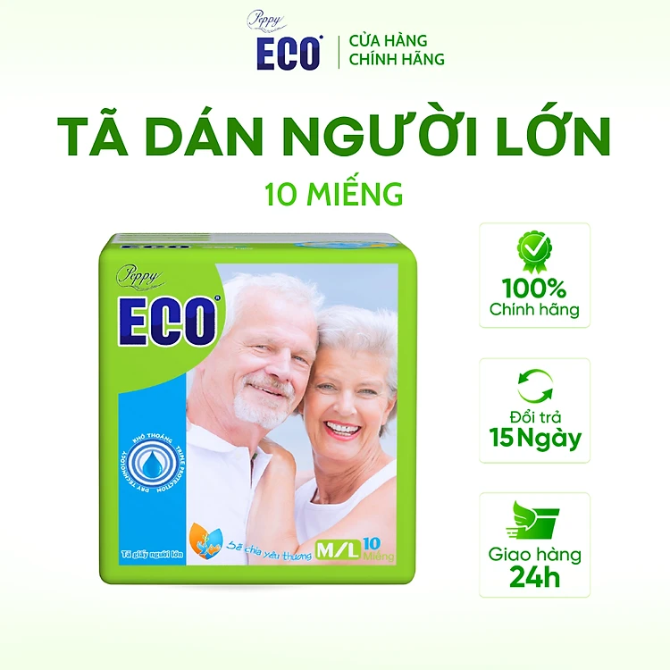 Tã Dán Người Lớn Peppy Eco Siêu Mềm Mại, Siêu Khô Thoáng, Kháng khuẩn Size M/L (10 Miếng