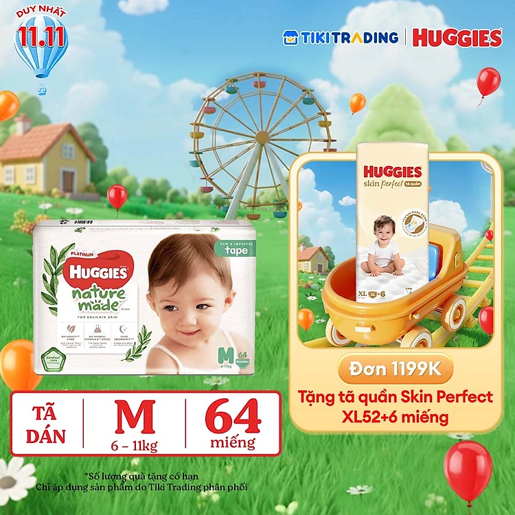 Tã Dán Siêu Cao Cấp Huggies Platinum Naturemade M64 (64 Miếng)