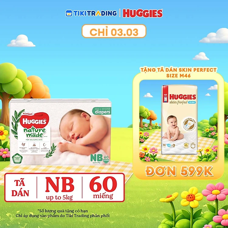 Tã Dán Siêu Cao Cấp Huggies Platinum Naturemade NB60 (60 Miếng)