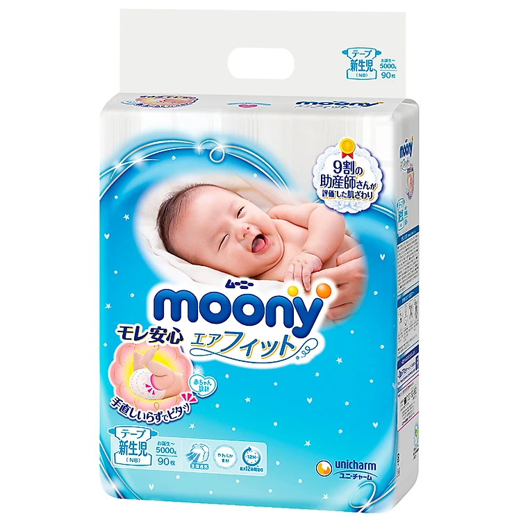 Moony là dòng tã siêu cao cấp được nhập khẩu nguyên gói từ Nhật Bản - nhà sản xuất tã em bé số 1 Nhật Bản (Unicharm Nhật Bản). Với chất lượng vượt trội cùng thiết kế độc quyền C-shape - thiết kế đặc biệt dành cho bé, tã dán Moony tự hào là dòng tã được Hiệp hội các bà mẹ Nhật Bản bình chọn là dòng tã em bé số 1. Moony size NB mang đầy đủ những ưu điểm nổi trội của dòng tã dán, sẽ là lựa chọn hoàn hảo của mẹ dành cho bé trong những năm tháng đầu đời, giúp bảo vệ sức khỏe bé tốt nhất.