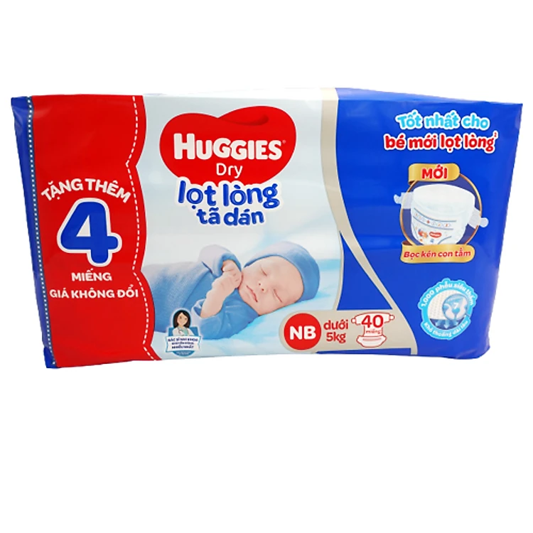 - Tã Dán Sơ Sinh Huggies NB40 - Dưới 5Kg là tã dán Sơ sinh duy nhất có thiết kế độc đáo Bọc Kén Con Tằm mới với vùng lưng có Lớp đệm siêu mềm như bọc kén giúp nâng niu bảo vệ da bé từ ngày đầu chào đời.