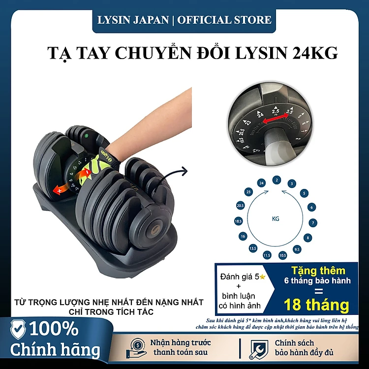 Tạ Đơn Điều Chỉnh Lysin Pumpking 24kg – Tạ Gym Đổi Trọng Lượng Nhanh Một Tay