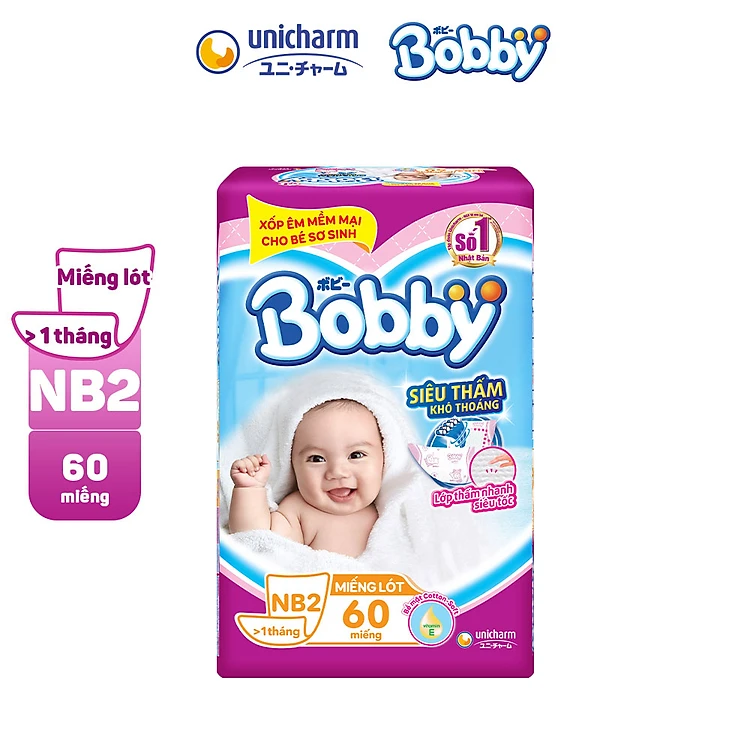 Tã Giấy Newborn 2 Bobby 40 Miếng/ 60 Miếng