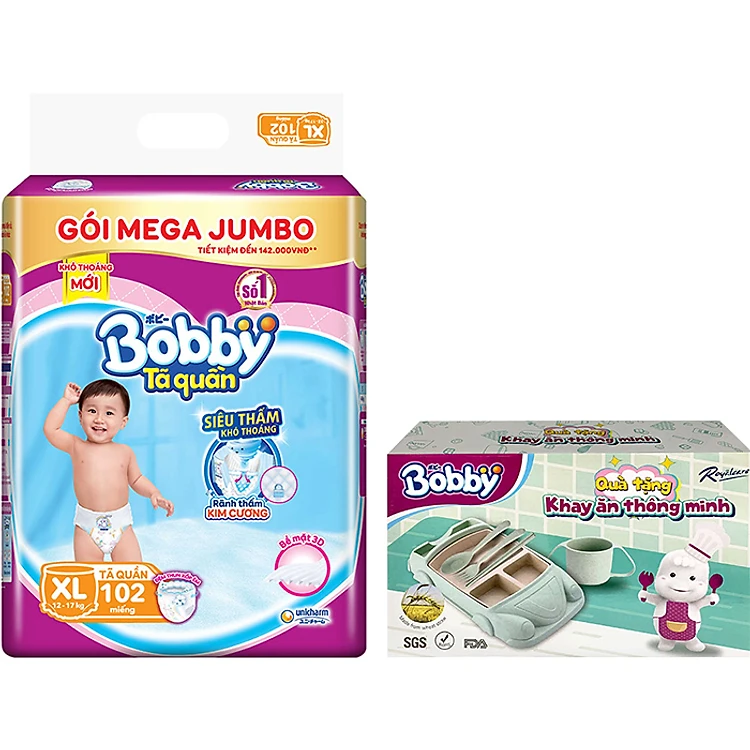 - Tã quần Bobby siêu thấm khô thoáng Mega Jumbo XL102 là sản phẩm mới, dòng cao cấp nhất trong các dòng sản phẩm của Bobby, chất liệu mềm mại, an toàn cùng độ thấm hút, thoáng khí tốt luôn là những tiêu chí được các mẹ ưu tiên hàng đầu mỗi khi đi lựa chọn bỉm, tã cho bé.