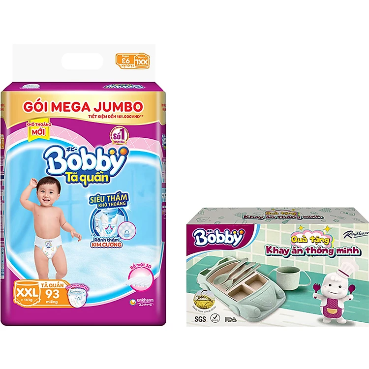- Tã quần Bobby siêu thấm khô thoáng Mega Jumbos XXL93 là sản phẩm mới, dòng cao cấp nhất trong các dòng sản phẩm của Bobby, chất liệu mềm mại, an toàn cùng độ thấm hút, thoáng khí tốt luôn là những tiêu chí được các mẹ ưu tiên hàng đầu mỗi khi đi lựa chọn bỉm, tã cho bé.