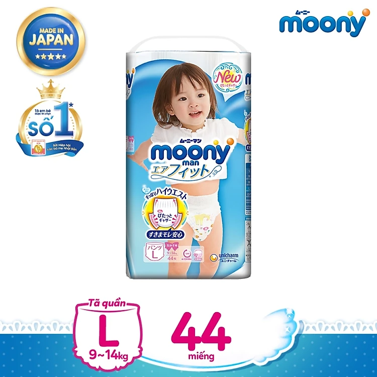 Moony là dòng tã siêu cao cấp được nhập khẩu nguyên gói từ Nhật Bản của Unicharm - nhà sản xuất tã em bé số 1 Nhật Bản (Unicharm Nhật Bản). Với chất lượng vượt trội cùng thiết kế độc quyền dành cho bé, tã quần Moony tự hào là dòng tã được Hiệp hội các bà mẹ Nhật Bản bình chọn là dòng tã cho bé số 1. Sản phẩm tã quần Moony mang đầy đủ những ưu điểm nổi trội của dòng tã quần, sẽ là lựa chọn hoàn hảo của mẹ dành cho bé, giúp bảo vệ sức khỏe bé tốt nhất. Đặc biệt sản phẩm có thiết kế dành riêng cho từng giới tính của bé.