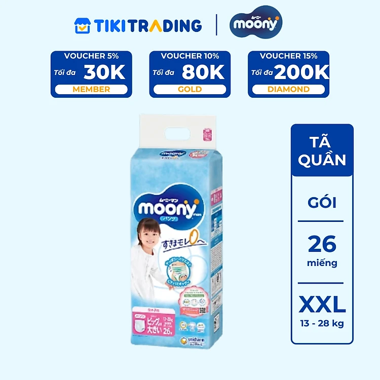 Tã Quần Cao Cấp Moony Nhật Bản Bé Gái XXL26 (26 Miếng)