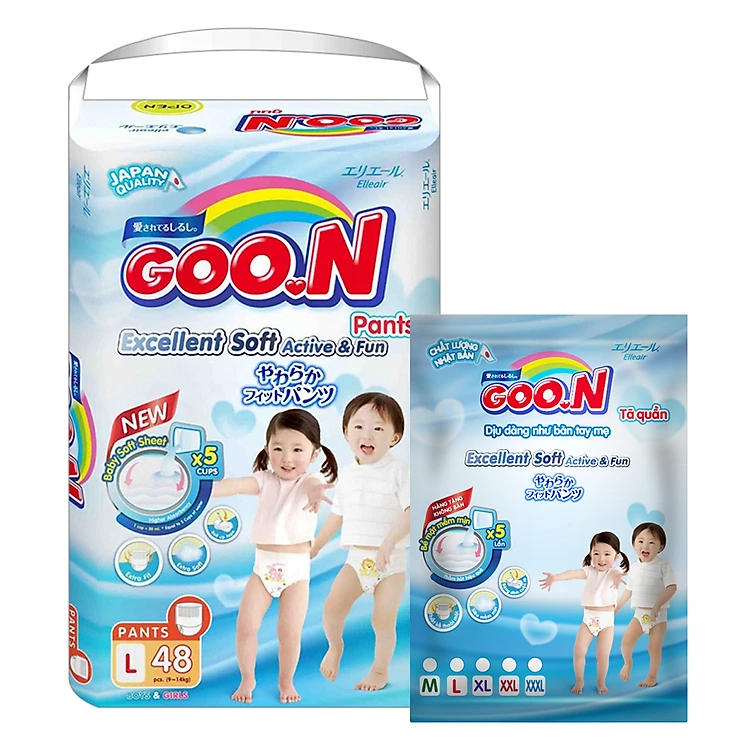 - Tã Quần GOO.N có khả năng thấm hút cực nhanh, giữ cho bề mặt tã luôn khô thoáng cho bé luôn cảm thấy nhẹ nhàng, chống hăm tối ưu để thoải mái vui chơi suốt cả ngày.