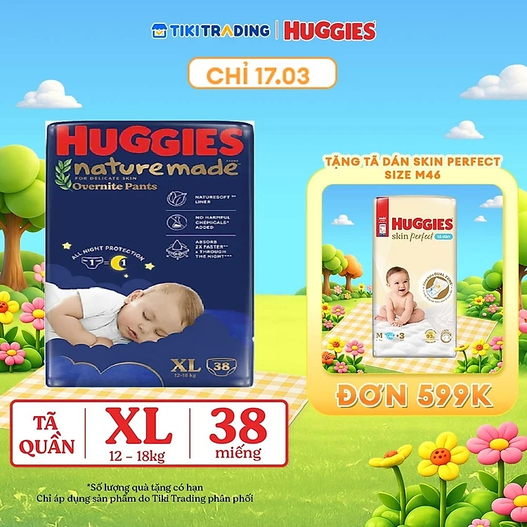 Tã quần Huggies Naturemade ban đêm XL 38 miếng