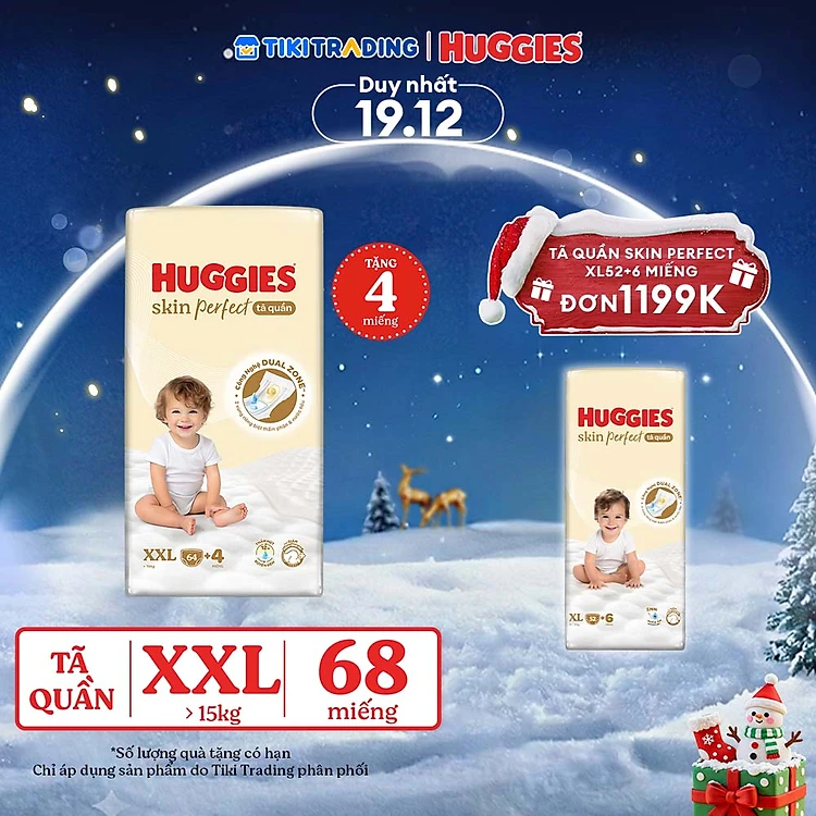 Tã quần Huggies Skin Perfect Mega Jumbo XXL64+4 miếng với 2 vùng thấm giảm kích ứng da