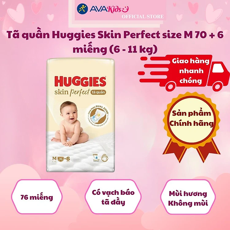 Tã quần Huggies Skin Perfect size M 70 + 6 miếng (6 - 11 kg)