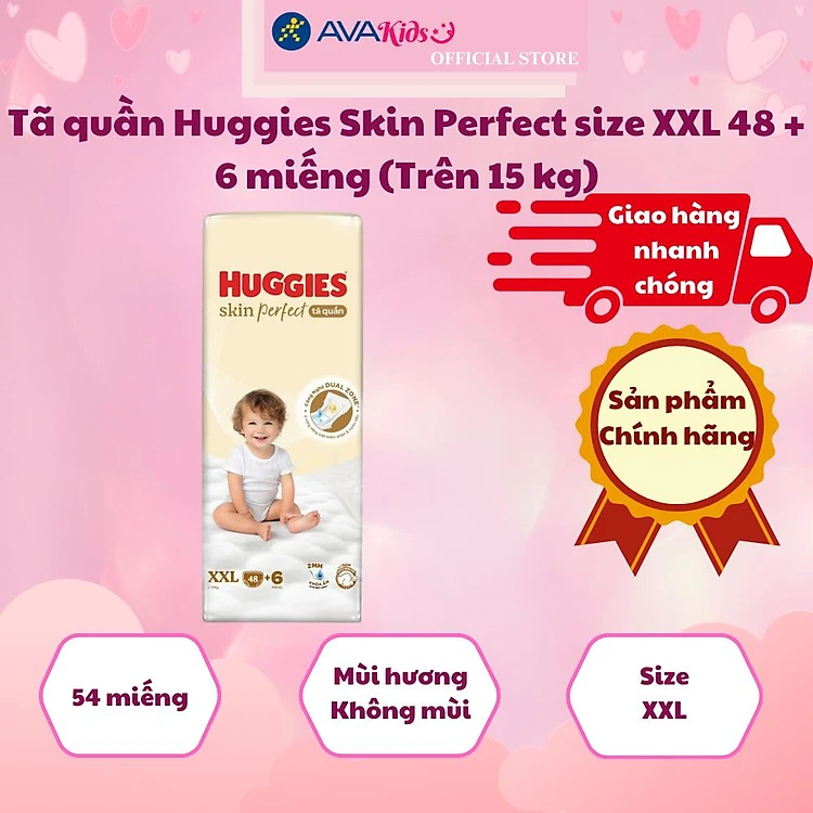 Tã quần Huggies Skin Perfect có dung lượng lớn nên có khả năng thấm hút lên đến 12 giờ.