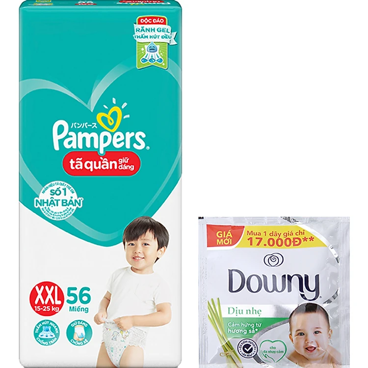 Với công nghệ Rãnh Gel , tã quần Pampers Giữ Dáng giúp thấm hút nhanh và dàn đều nước tiểu của bé, giúp giữ dáng tã luôn mỏng nhẹ, chống xệ và chống tràn nước tiểu. Giúp bé dễ dàng tập đi mà không lo hai hàng.