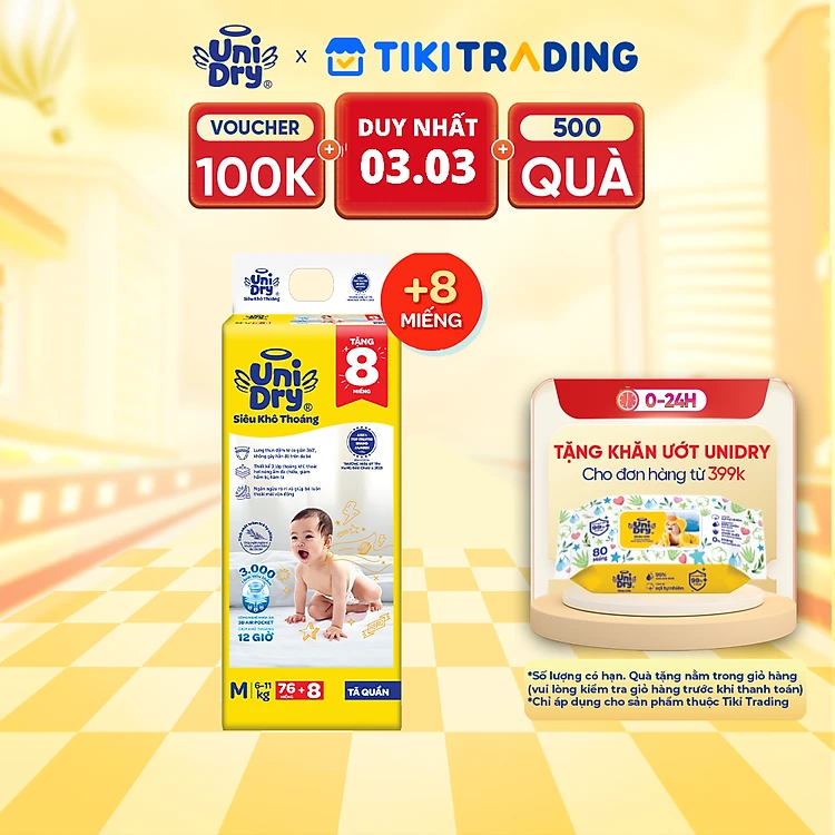 Tã quần UniDry Siêu khô thoáng gói Jumbo mới size M