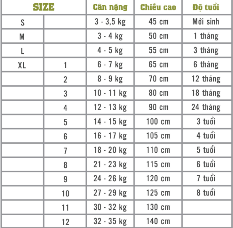 *Bảng Size