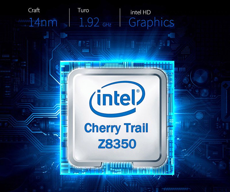 - CPU: Intel Cherry Trail Z8350 lõi tứ