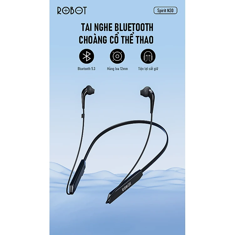 Tai Nghe Bluetooth 5.3 Choàng Cổ ROBOT Spirit N30 - Màu Đen - HÀNG CHÍNH HÃNG