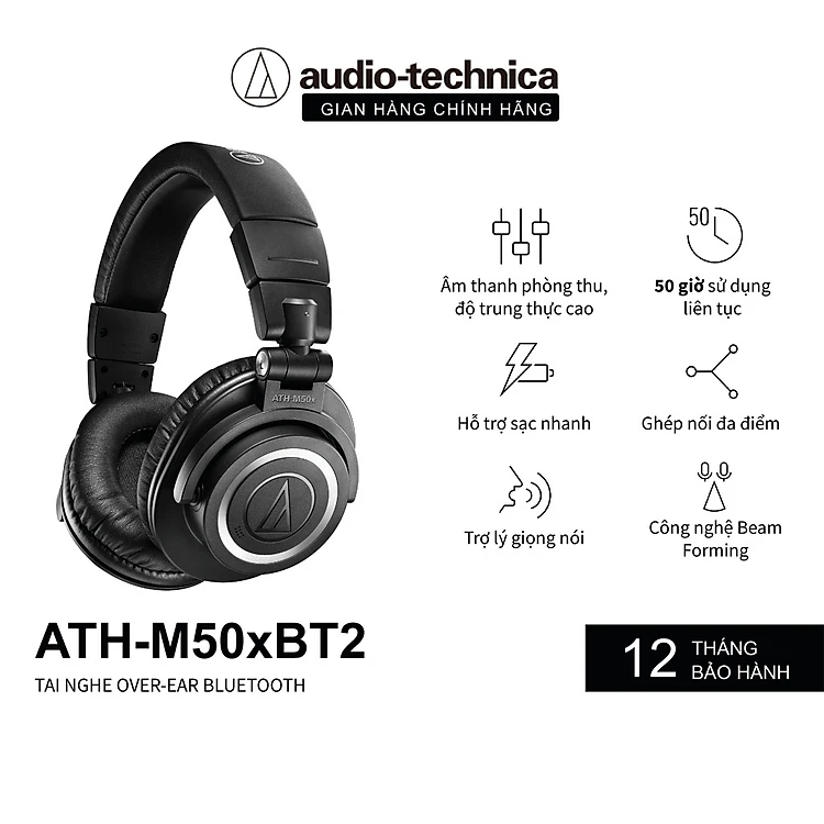 Tai Nghe Bluetooth Choàng Đầu Kiểm Âm Over Ear Audio Technica ATH-M50xBT2 – Hàng Chính Hãng