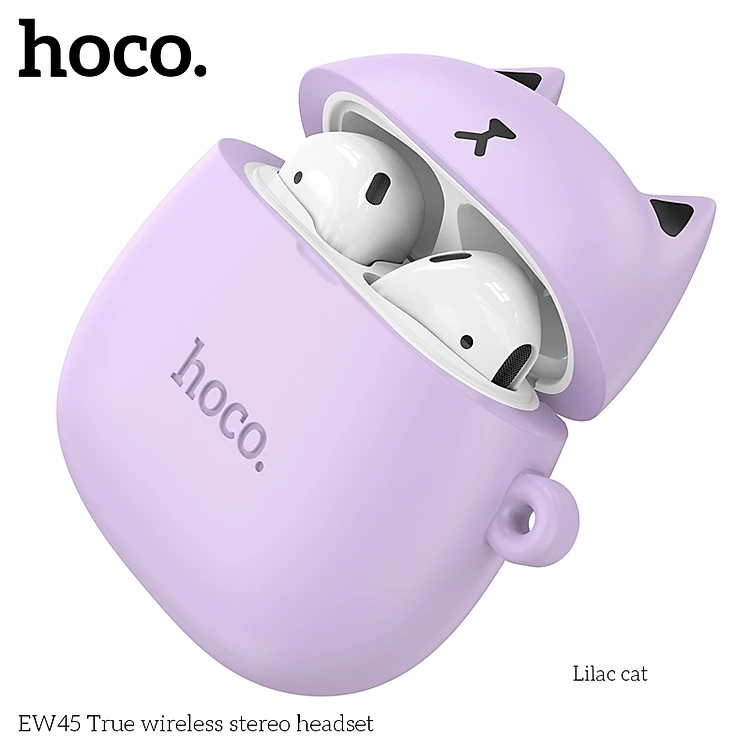 Tai Nghe Bluetooth Hoco EW45 TWS 5.3, Có Mic Đàm Thoại, Nghe Nhạc 4H, Kèm Case Tai Mèo Cute - Hàng chính hãng