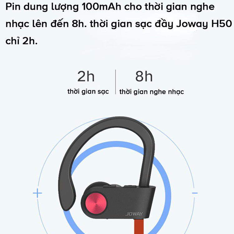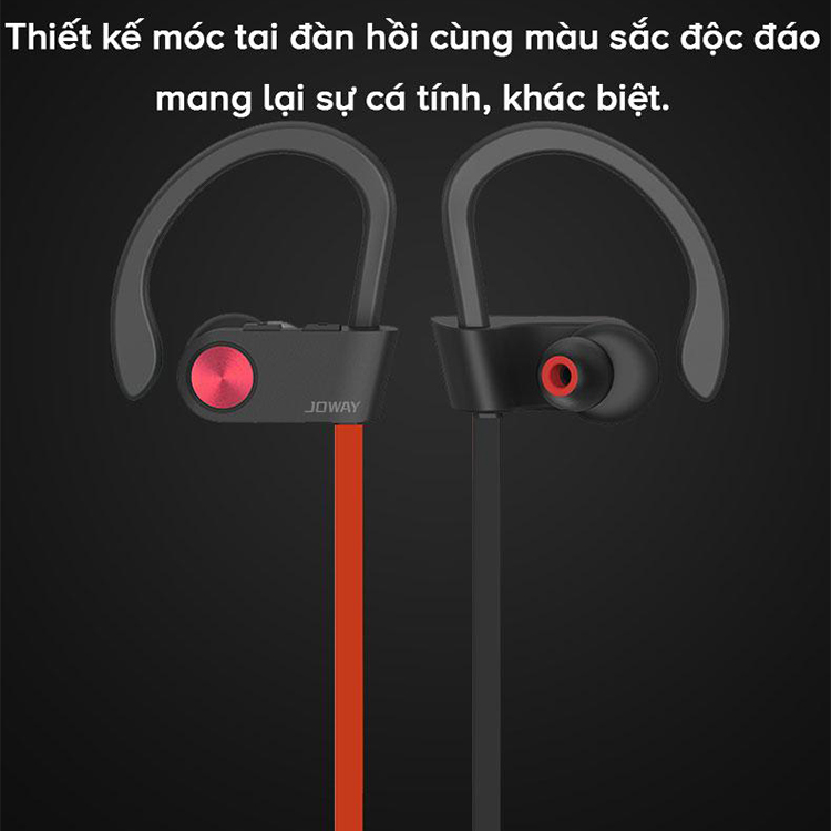 Tai Nghe Bluetooth Không Dây Thể Thao Joway H50 có thiết kế móc tai nghe đơn giản nhưng không kém phần độc đáo tạo sự chắc chắn khi sử dụng cho các môn thể thao ngoài trời. Thiết kế móc tai đàn hồi cùng màu sắc độc đáo mang lại sự cá tính, khác biệt. Phần lót tai nghe được làm bằng chất liệu silicon cho cảm giác ổn định và thoải mái khi sử dụng.