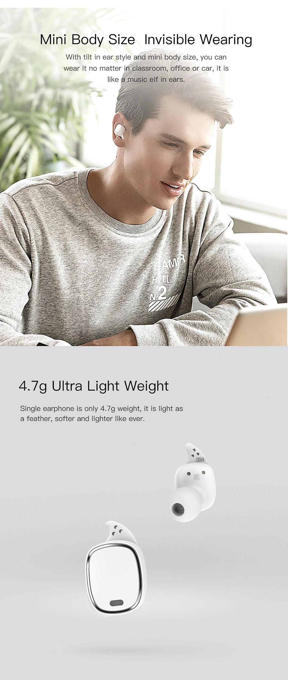 - Tai Nghe Bluetooth Không Dây TWS Xiaomi QCY T1 Pro với kích thước tai nghe nhỏ hơn, việc này giúp cho việc đeo tai dễ hơn rất nhiều. Chỉ cần đặt nhẹ là chiếc tai nghe sẽ dính chặt vào đôi tai. Điều này cũng một phần do cải tiến từ các tips nhét tai Silicone, tips được làm mềm hơn, giúp ôm sát ống tai, từ đó cho cảm giác an toàn và cách âm tốt hơn.