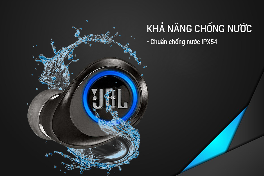 Đạt chuẩn chống nước IPX54, nghĩa là chống mưa nhẹ, chống nước bắn nhẹ vào và tất nhiên là kháng được mồ hôi nên người dùng hoàn toàn có thể sử dụng tai nghe JBL Free trong lúc luyện tập thể thao.