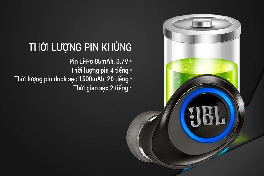 JBL Free có thời lượng pin lý tưởng lên đến 4 tiếng, nhưng đặc biệt là có thể mở rộng ra thêm 20 tiếng nữa nhờ vào bộ dock sạc kiêm hộp đựng cho tai nghe. Điều này mang lại sự tiện lợi thoải mái cho người dùng.