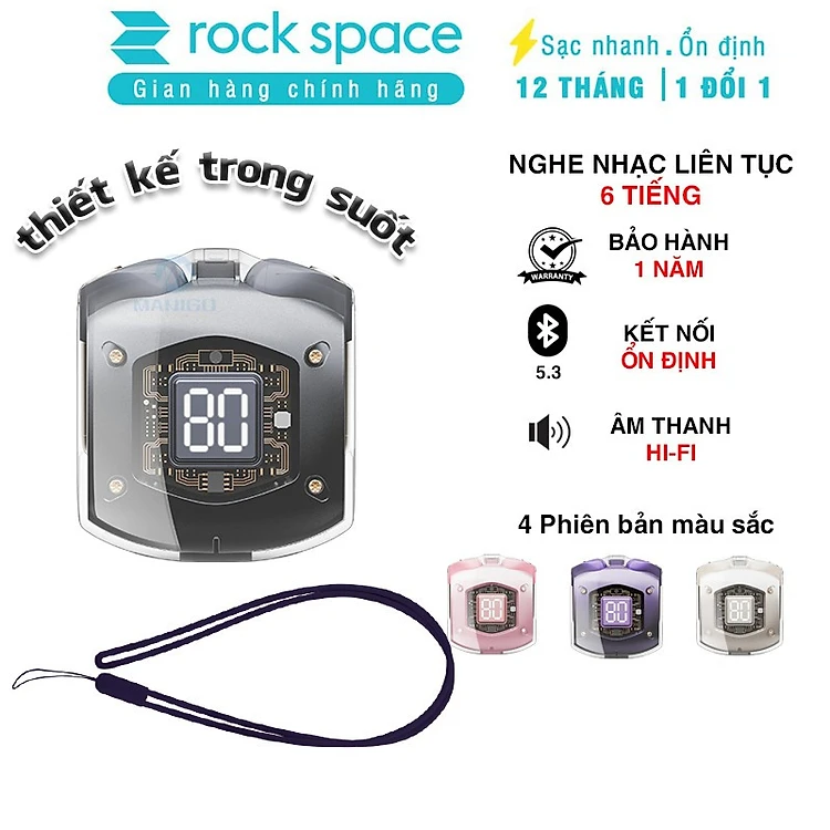 Tai nghe Bluetooth nhét tai không dây TWS Rockspace Air Bubble nghe nhạc lên đến 20h hàng chính hãng bảo hành 12 tháng