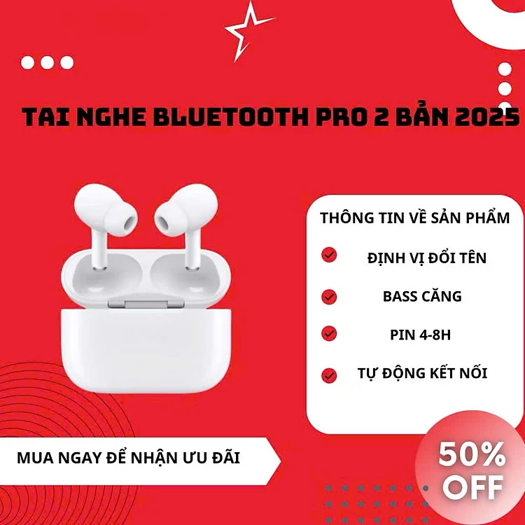 Tai Nghe Bluetooth Pro2 Không Dây định vị khử tiếng ồn ANC PIN TRÂU bass căng tự kết nối Fullbox phụ kiện đủ tính năng đàm thoại 2 chiều - HÀNG CHÍNH HÃNG