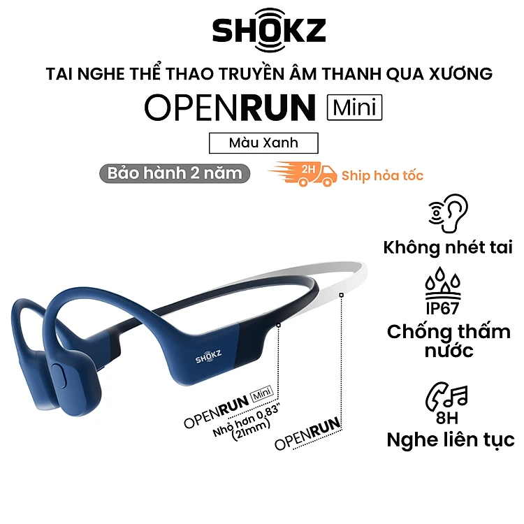 Tai Nghe Bluetooth Thể Thao Dẫn Truyền Âm Thanh Qua Xương SHOKZ OPEN RUN MINI S803 - Hàng Chính Hãng - Kháng nước IP67 - Sạc nhanh- Pin sử dụng trong 8 tiếng