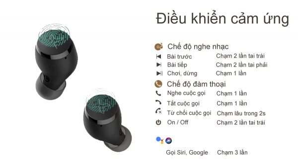 - Điều khiển cảm ứng dễ dàng trong nghe nhạc đàm thoại, trợ lý ảo