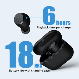 Thời lượng pin đảm bảo nghe nhạc liên tục 6 giờ và tổng thời gian khi sạc lên đến 24 giờ.