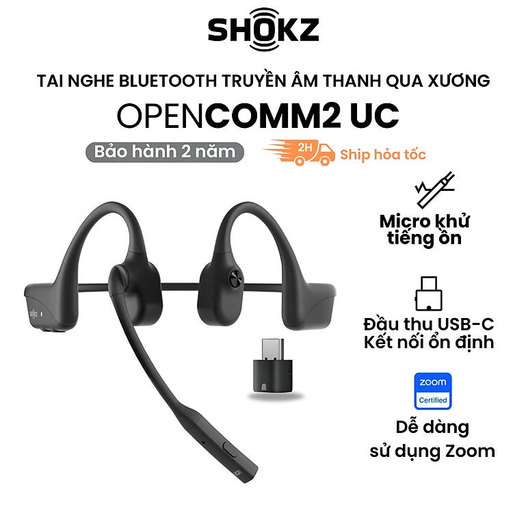 Tai nghe Bluetooth truyền âm thanh qua xương Shokz OPENCOMM2/OPENCOMM2 UC - Hàng Chính Hãng